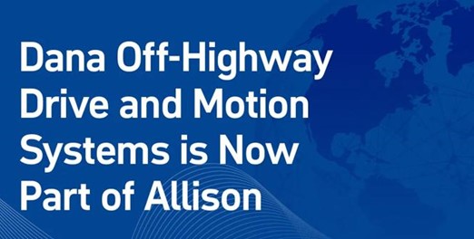 “We are excited to welcome our new colleagues from Dana Incorporated’s Off-Highway Drive & Motion Systems business to Allison,” said David Graziosi, Allison Chair, President and CEO. “Together, we have an expanded market reach and broader portfolio of high-quality and reliable products, creating a global platform that will continue to deliver strong financial performance from both organic and inorganic growth.”