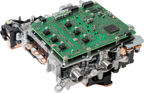 Using silicon carbide power semiconductors and a flat dual-sided cooling structure, Denso’s new inverter reduces power loss by about 70% and has been downsized about 30% compared to previous models. Drive technology helps maximize device performance, says the development team: “Through innovations in resin-insulated substrates and current pathways, we achieved approximately 50% reduction in inductance compared to our conventional products.”