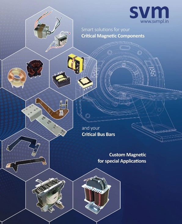Leveraging its recent acquisition of SVM Private Ltd, as previously reported in Magnetics Magazine, Exxelia took part in Electronica India for the first time this year. SVM specializes in the design and manufacturing of magnetic components and busbars for healthcare and industrial end-markets. It is particularly noted for its magnetics dedicated to medical imaging applications, where it designs and manufactures high-performance transformers and inductors for MRI, CT and X-Ray equipment. Now, these technologies and products are being integrated into the full Exxelia portfolio.