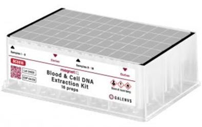 Galenvs also produces extraction kits such as the magnetiQ Blood & Cell DNA Extraction Kit which enables a rapid and efficient method of nucleic acid isolation from whole blood samples. Both manual and automated versions, shown here, are produced.