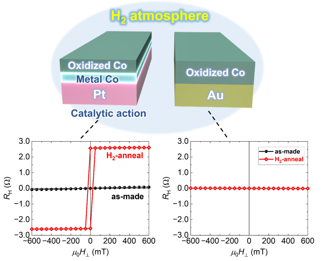 The researchers adjusted the oxidation damage to the Co layer by changing the sputtering power during deposition of the MgO layer. Annealing with molecular hydrogen (H2) was then performed, and the changes in the magnetic properties of the material were observed and compared with those before annealing.
