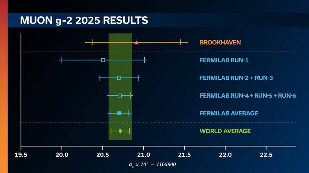 “The anomalous magnetic moment, or g–2, of the muon is important because it provides a sensitive test of the Standard Model of particle physics. This is an exciting result and it is great to see an experiment come to a definitive end with a precision measurement,” said Regina Rameika, the U.S. Department of Energy’s Associate Director for the Office of High Energy Physics.