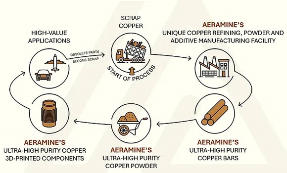 Aeramine, a technology startup from the UK, is commercializing an advanced vacuum refinement  technique for producing ultra-high purity copper using feedstock from both virgin or recycled copper sources. Its copper features exceptionally low oxygen content and impurity levels, tailored for the most demanding applications where the generation of excessive heat can be a problem.